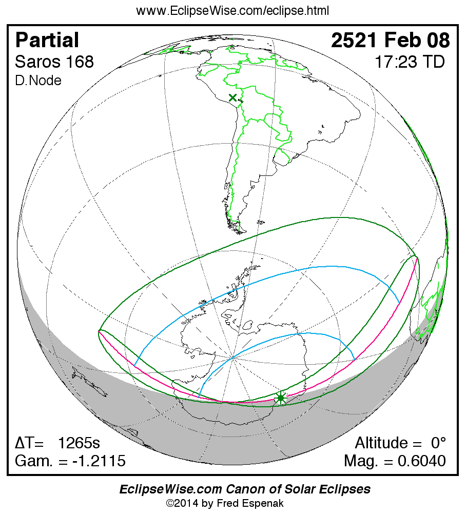 The instant of greatest eclipse takes place on 2521 Feb 08 at 17:22:53 TD (17:01:47 UT1).