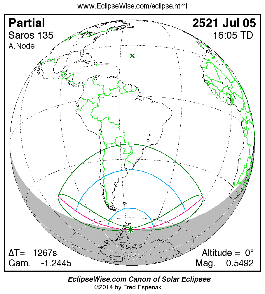 The instant of greatest eclipse takes place on 2521 Jul 05 at 16:04:52 TD (15:43:44 UT1).