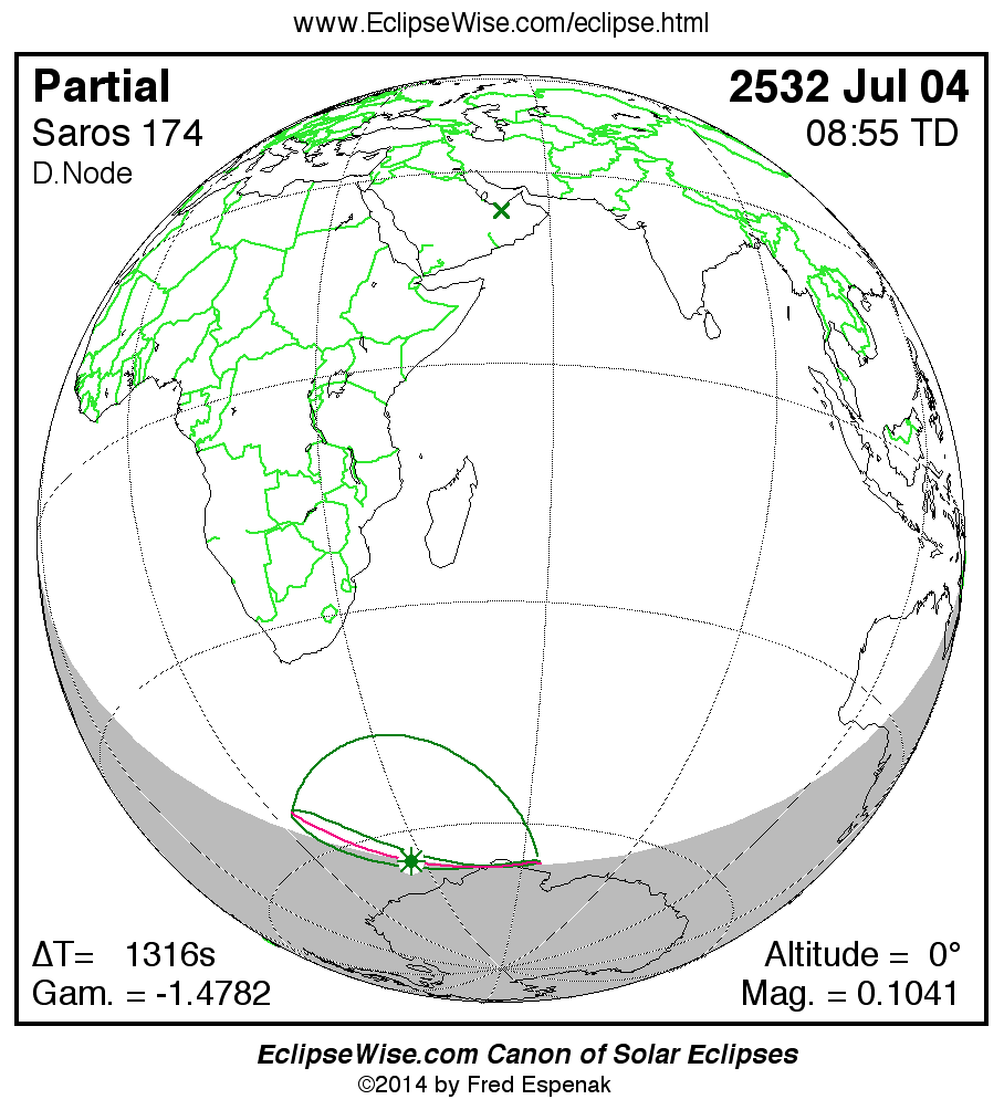 The instant of greatest eclipse takes place on 2532 Jul 04 at 08:54:57 TD (08:33:01 UT1).