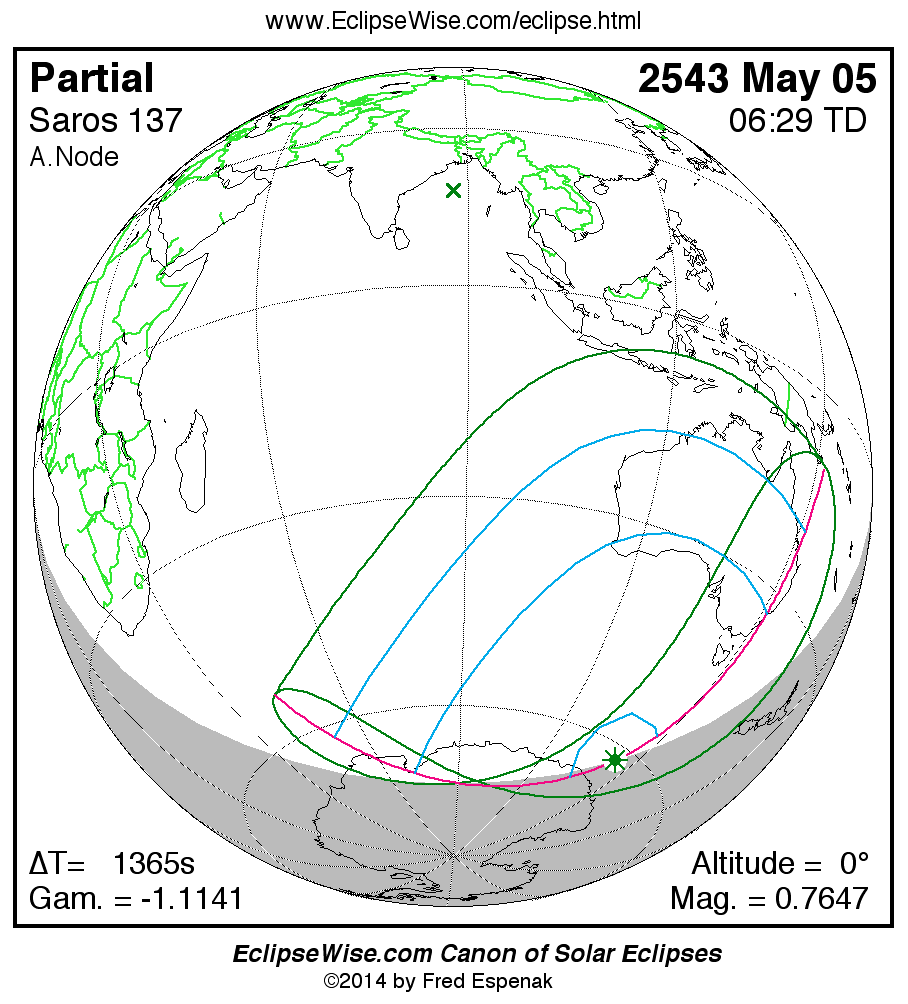 The instant of greatest eclipse takes place on 2543 May 05 at 06:29:17 TD (06:06:33 UT1).