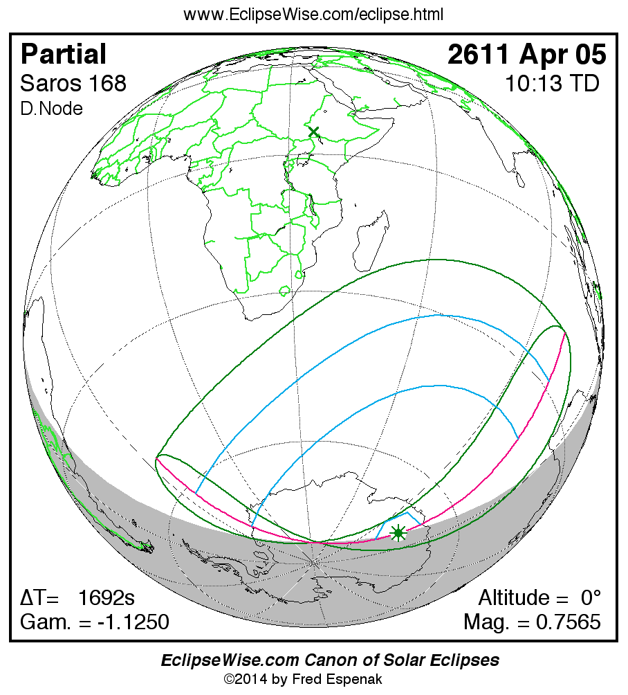 All eclipse calculations are by Fred Espenak, and he assumes full responsibility for their accuracy.