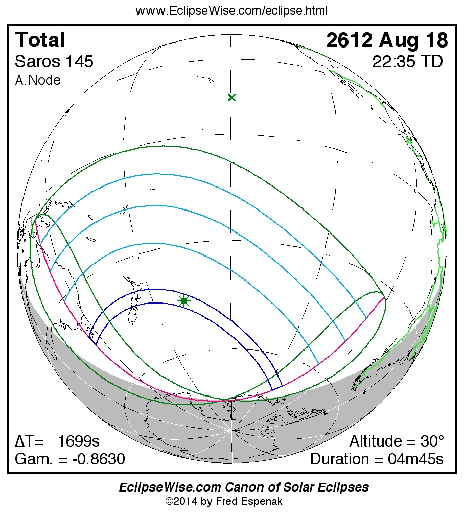 - Orthographic Map: Total Solar Eclipse of 2612 Aug 18 - global map of eclipse visibility