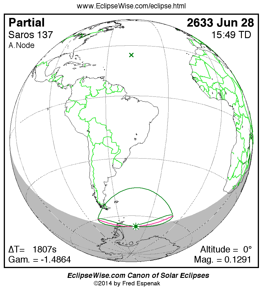 The instant of greatest eclipse takes place on 2633 Jun 28 at 15:48:38 TD (15:18:32 UT1).