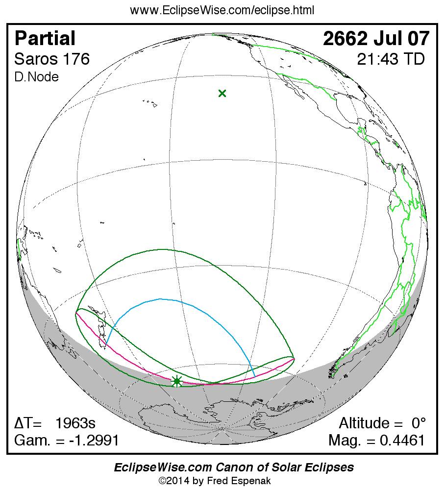 The instant of greatest eclipse takes place on 2662 Jul 07 at 21:43:20 TD (21:10:38 UT1).