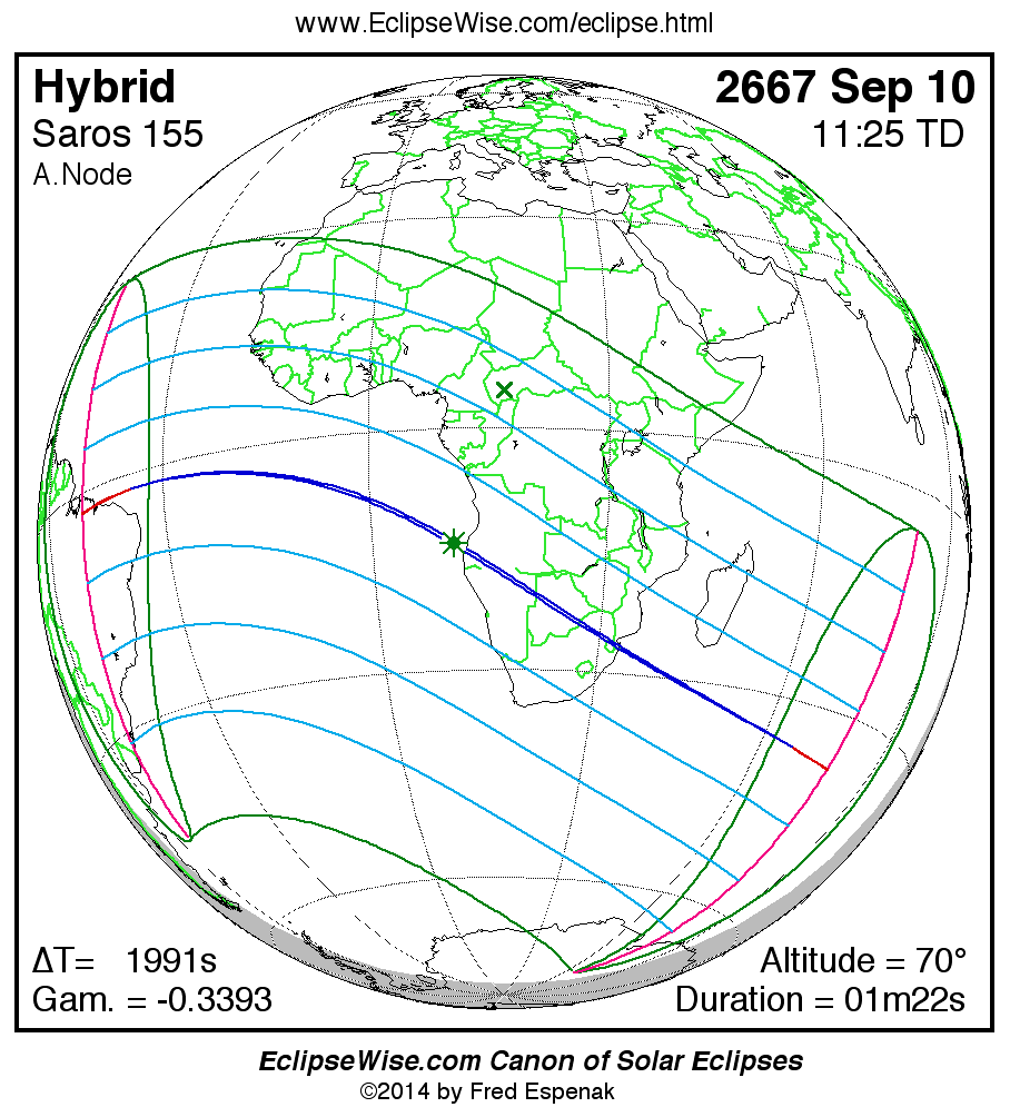 - Google Map: Hybrid Solar Eclipse of 2667 Sep 10 - interactive map of the eclipse path
