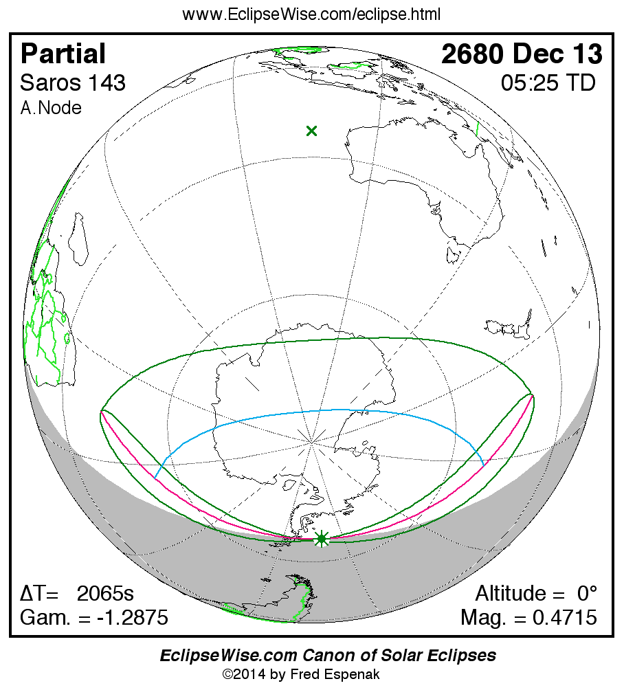 The instant of greatest eclipse takes place on 2680 Dec 13 at 05:25:01 TD (04:50:36 UT1).