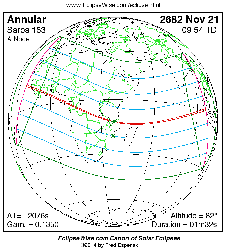 The instant of greatest eclipse takes place on 2682 Nov 21 at 09:54:28 TD (09:19:52 UT1).