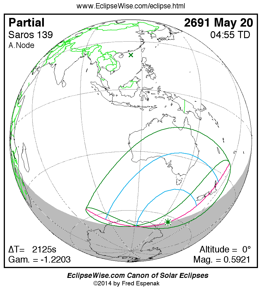 The instant of greatest eclipse takes place on 2691 May 20 at 04:55:07 TD (04:19:42 UT1).