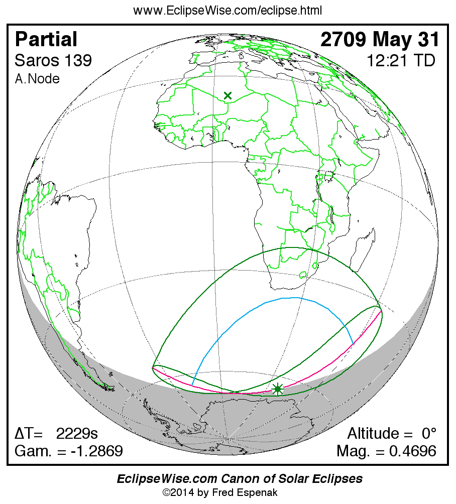 The instant of greatest eclipse takes place on 2709 May 31 at 12:21:15 TD (11:44:06 UT1).
