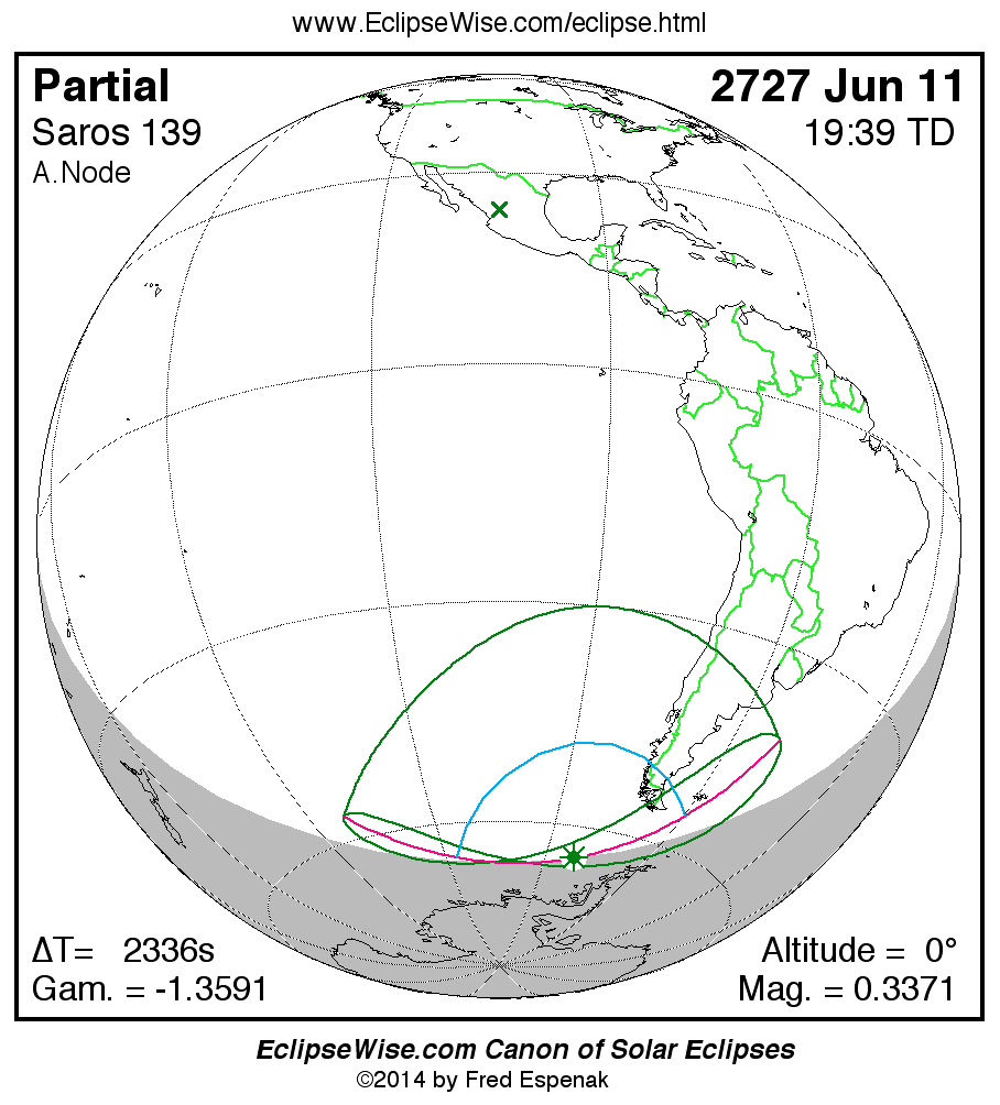 The instant of greatest eclipse takes place on 2727 Jun 11 at 19:38:58 TD (19:00:02 UT1).