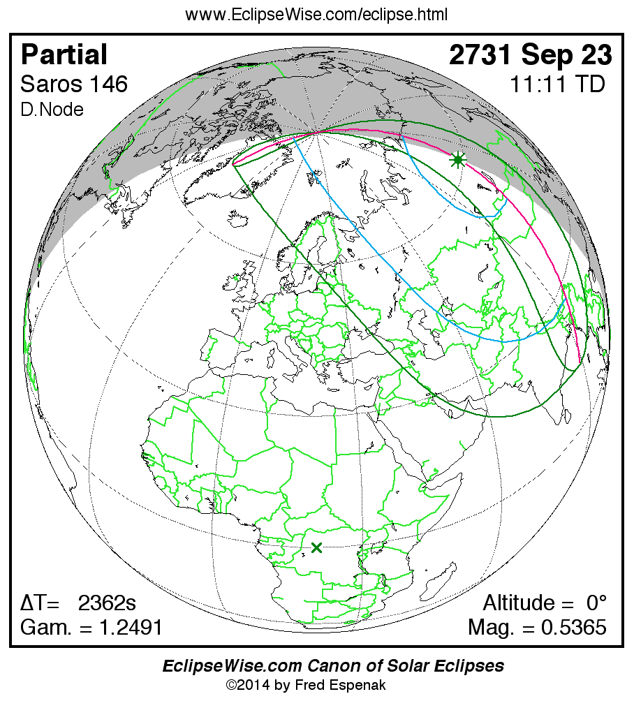 The instant of greatest eclipse takes place on 2731 Sep 23 at 11:10:43 TD (10:31:22 UT1).
