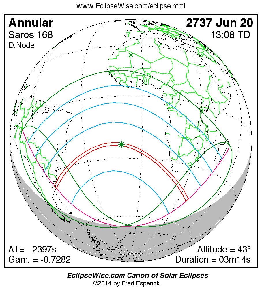 The instant of greatest eclipse takes place on 2737 Jun 20 at 13:07:57 TD (12:28:01 UT1).