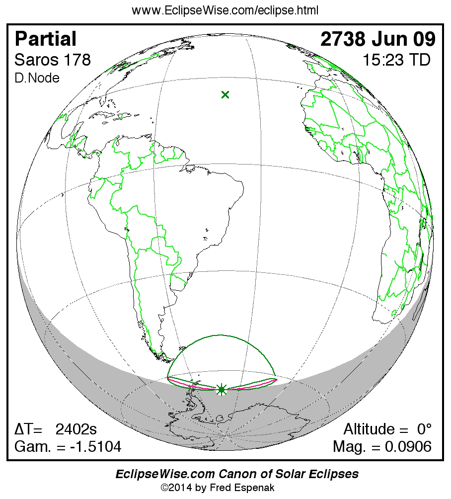 The instant of greatest eclipse takes place on 2738 Jun 09 at 15:22:59 TD (14:42:57 UT1).