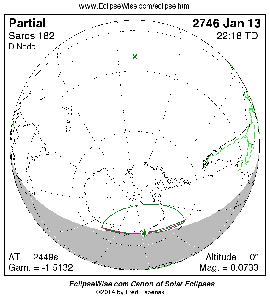 The instant of greatest eclipse takes place on 2746 Jan 13 at 22:18:09 TD (21:37:20 UT1).