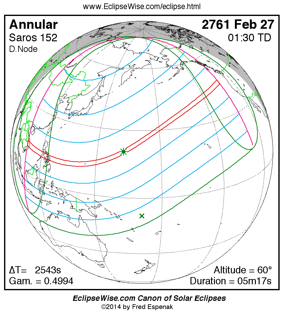 The instant of greatest eclipse takes place on 2761 Feb 27 at 01:29:36 TD (00:47:14 UT1).