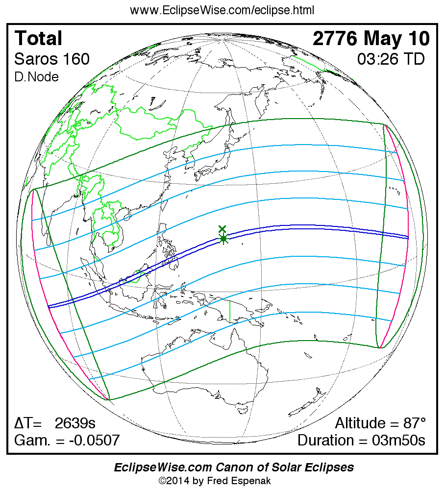 The instant of greatest eclipse takes place on 2776 May 10 at 03:25:47 TD (02:41:48 UT1).