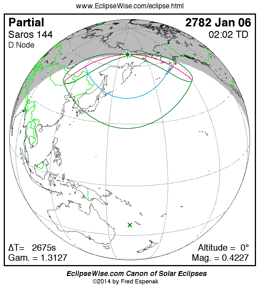 The instant of greatest eclipse takes place on 2782 Jan 06 at 02:02:14 TD (01:17:39 UT1).