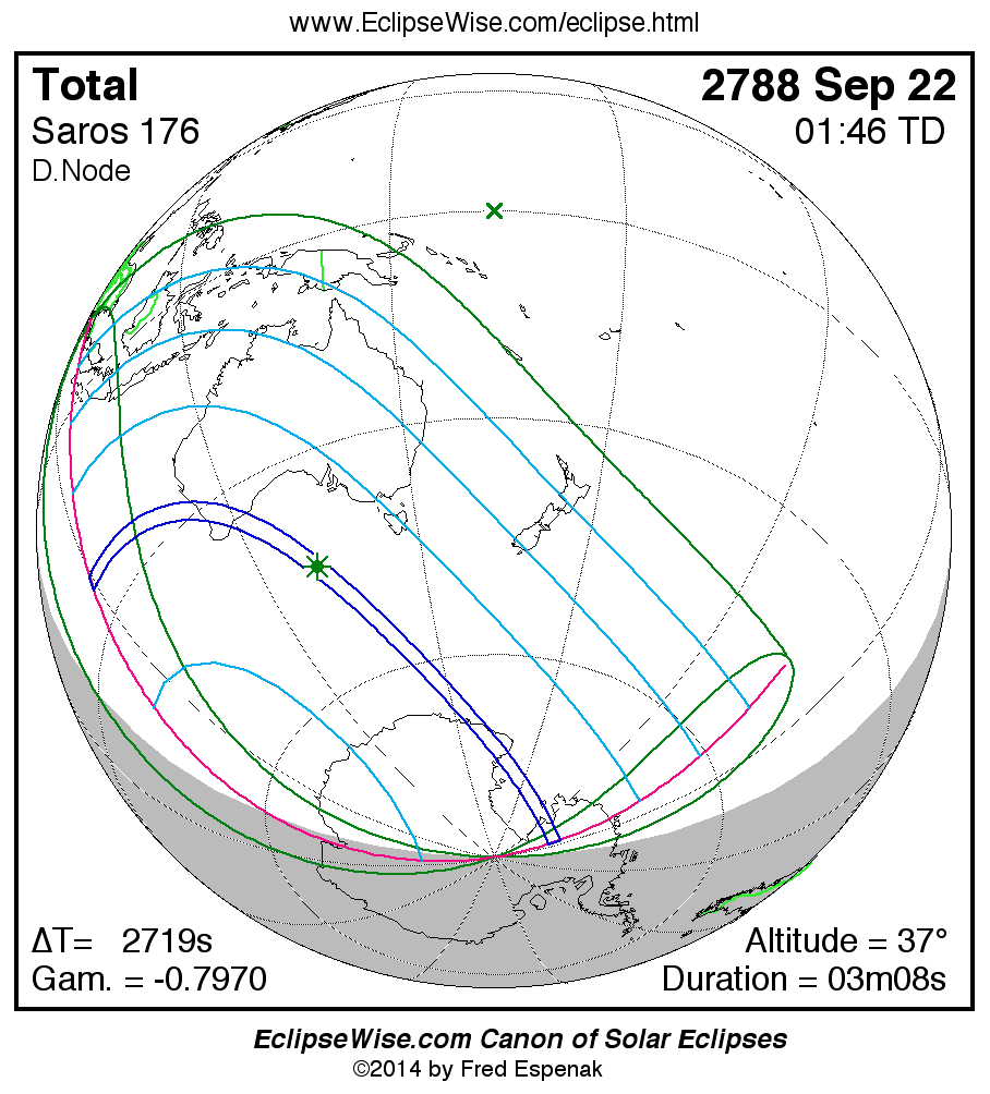 The instant of greatest eclipse takes place on 2788 Sep 22 at 01:45:47 TD (01:00:29 UT1).