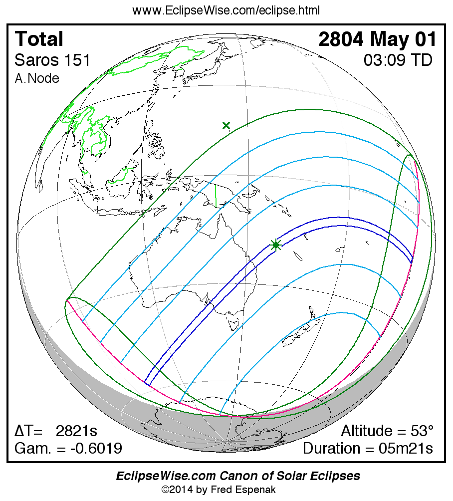 - Path Table: Total Solar Eclipse of 2804 May 01 - coordinates of the central line and path limits
