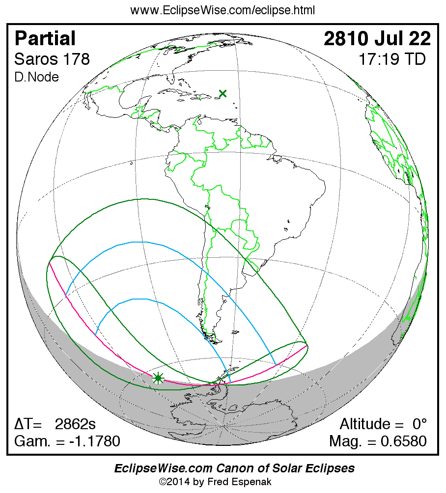 The instant of greatest eclipse takes place on 2810 Jul 22 at 17:18:33 TD (16:30:51 UT1).