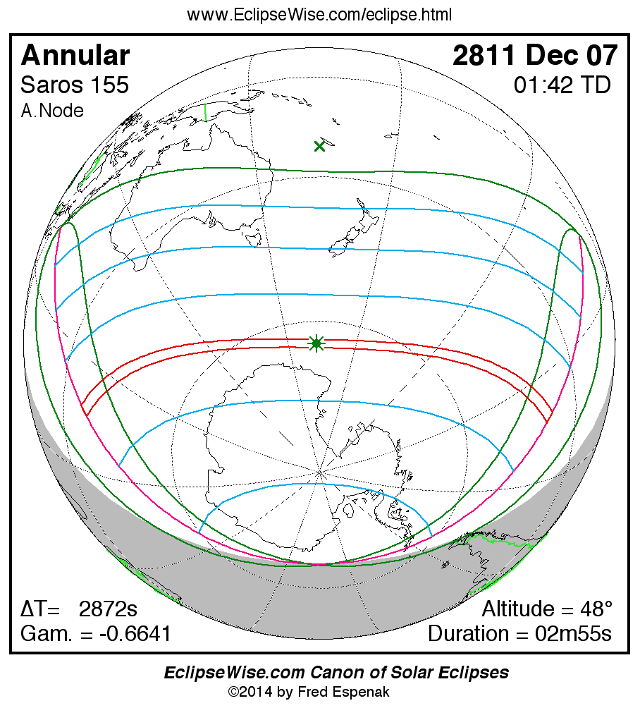 The instant of greatest eclipse takes place on 2811 Dec 07 at 01:42:15 TD (00:54:24 UT1).