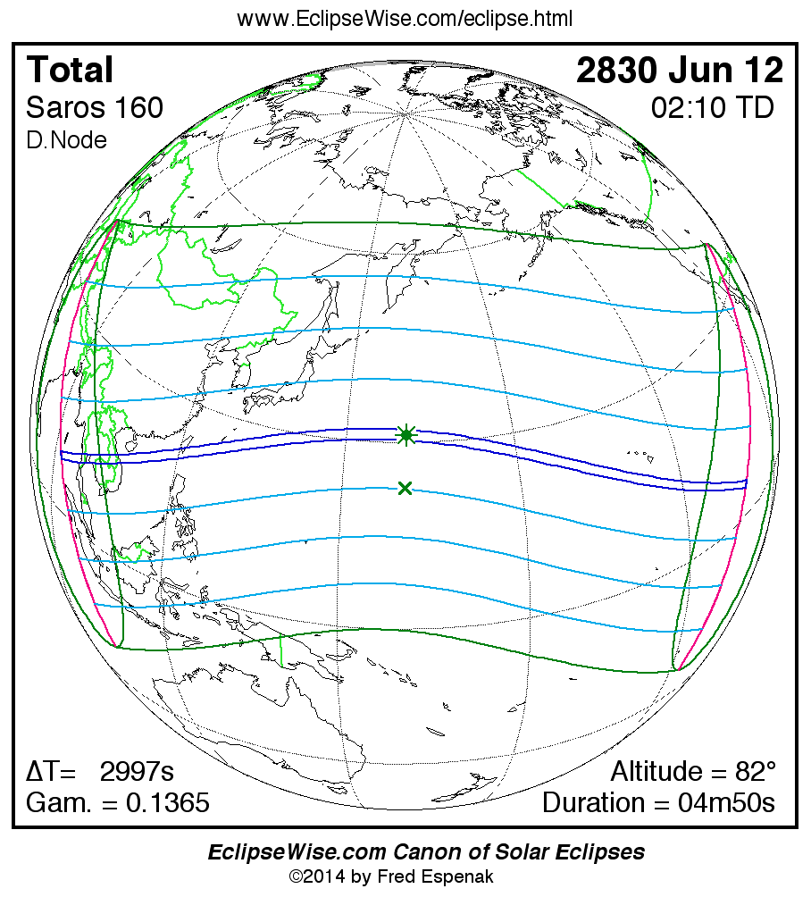 - Path Table: Total Solar Eclipse of 2830 Jun 12 - coordinates of the central line and path limits