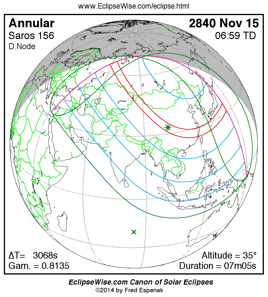 - Orthographic Map: Annular Solar Eclipse of 2840 Nov 15 - global map of eclipse visibility