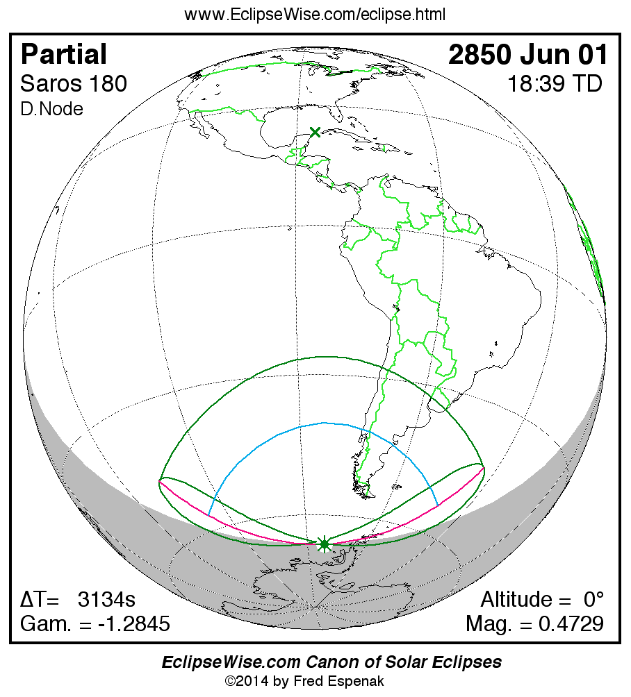 The instant of greatest eclipse takes place on 2850 Jun 01 at 18:39:20 TD (17:47:06 UT1).