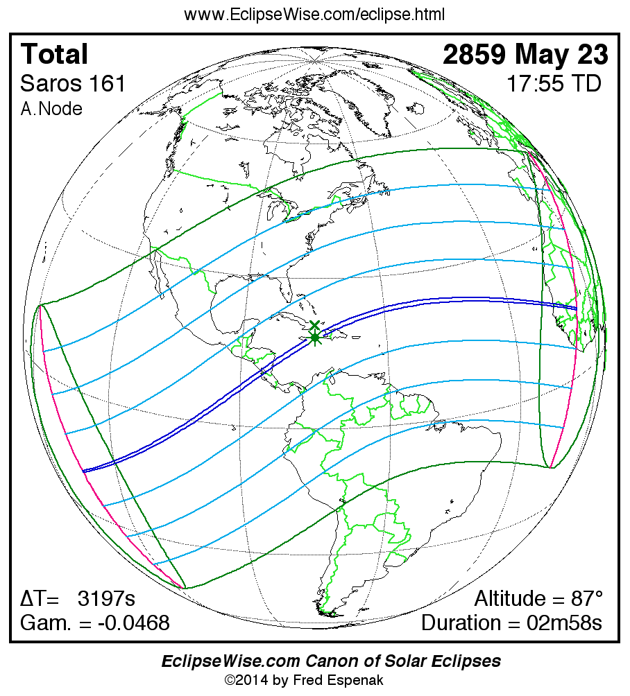 The instant of greatest eclipse takes place on 2859 May 23 at 17:54:31 TD (17:01:14 UT1).