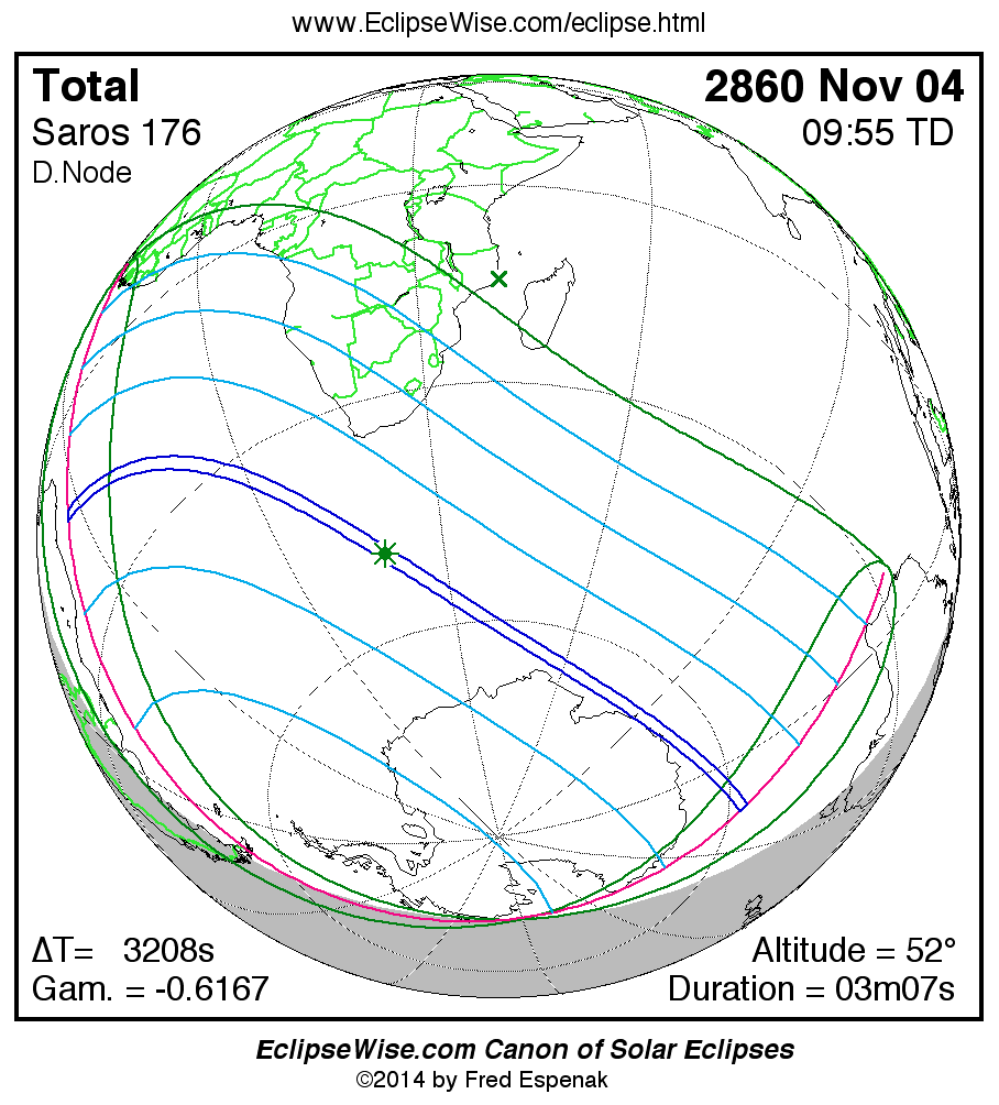 The instant of greatest eclipse takes place on 2860 Nov 04 at 09:55:23 TD (09:01:56 UT1).