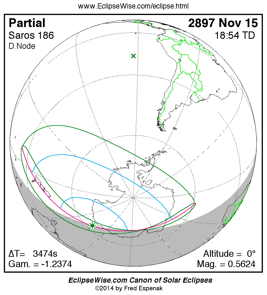The instant of greatest eclipse takes place on 2897 Nov 15 at 18:53:55 TD (17:56:01 UT1).