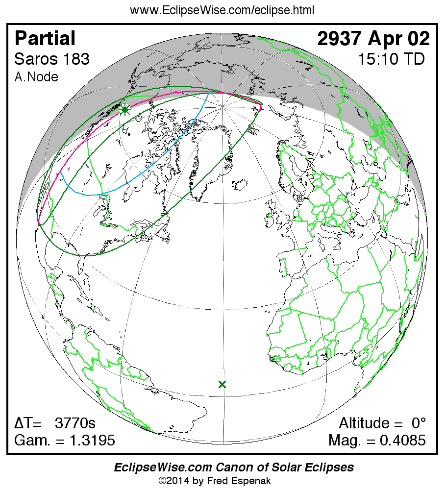 The instant of greatest eclipse takes place on 2937 Apr 02 at 15:10:14 TD (14:07:24 UT1).
