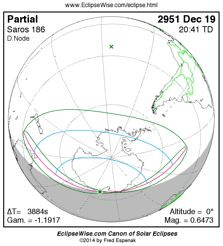 The instant of greatest eclipse takes place on 2951 Dec 19 at 20:40:54 TD (19:36:10 UT1).