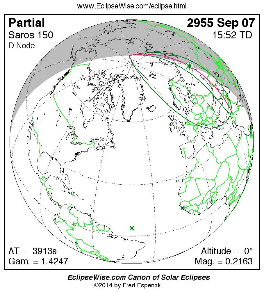 The instant of greatest eclipse takes place on 2955 Sep 07 at 15:51:35 TD (14:46:22 UT1).