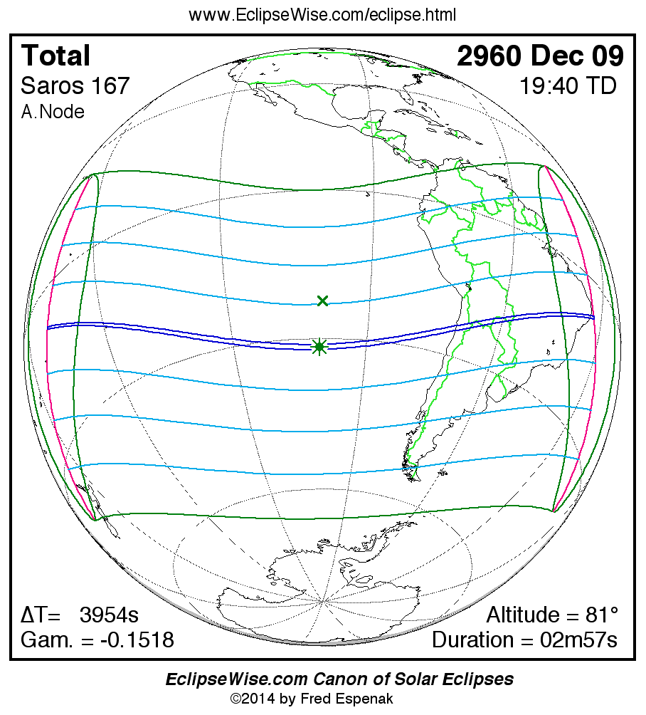 The instant of greatest eclipse takes place on 2960 Dec 09 at 19:39:34 TD (18:33:40 UT1).