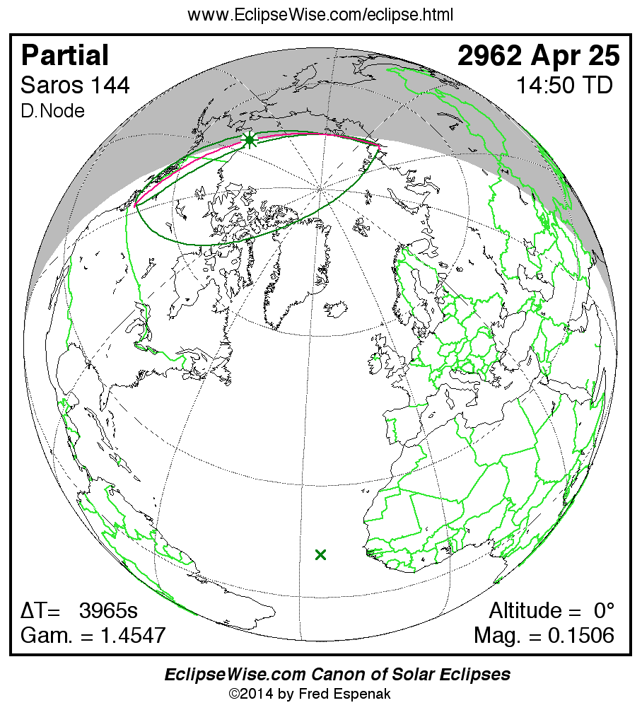 The instant of greatest eclipse takes place on 2962 Apr 25 at 14:50:27 TD (13:44:23 UT1).