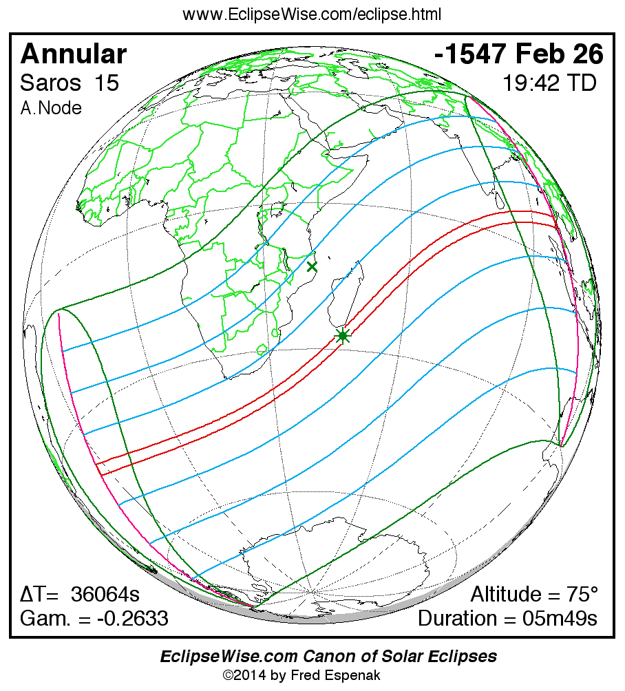 For more information on this series see Statistics for Solar Eclipses of Saros 15 .