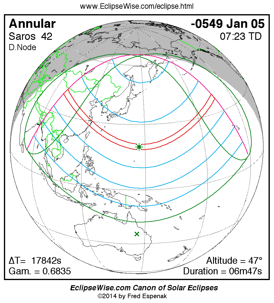 For more information on this series see Statistics for Solar Eclipses of Saros 42 .