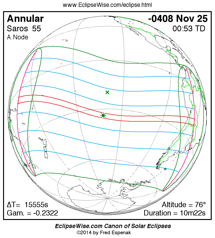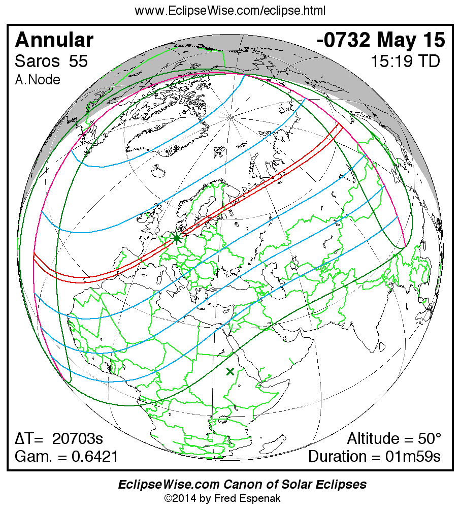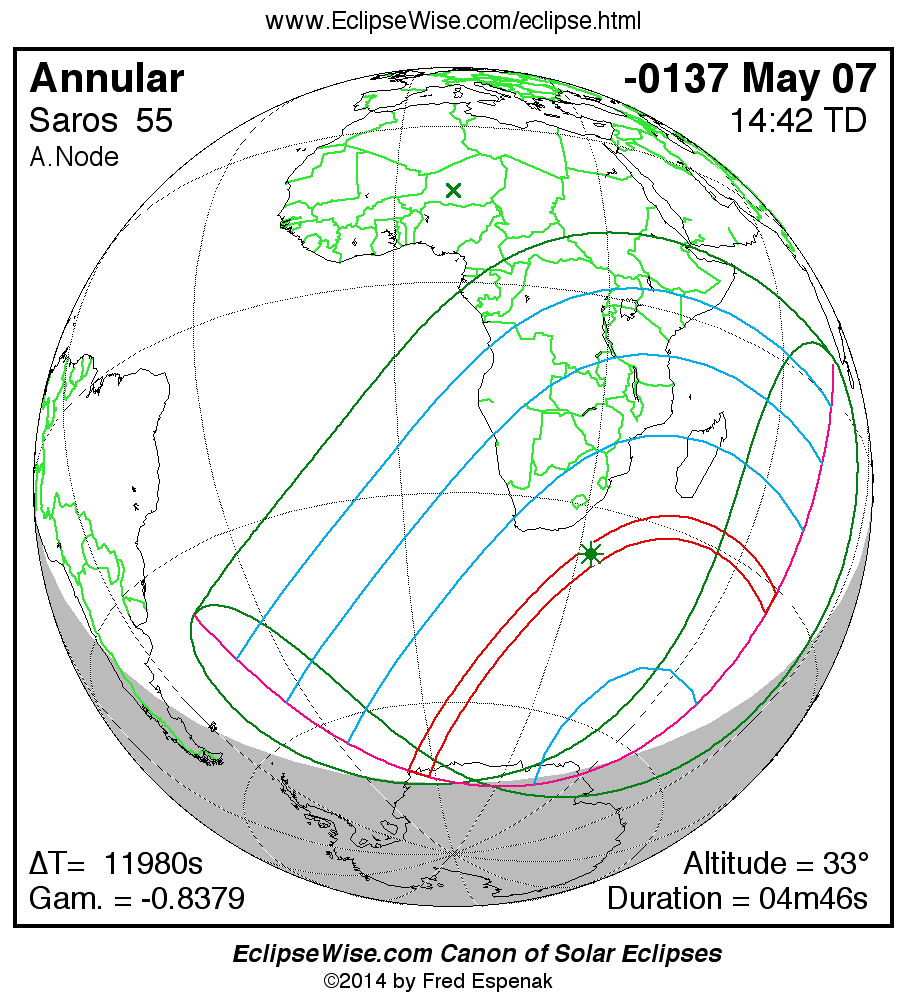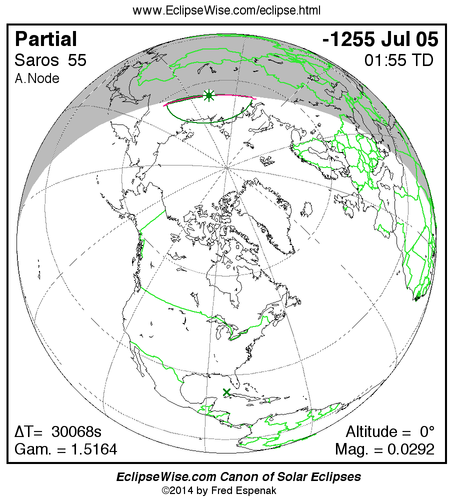 For more information on this series see Statistics for Solar Eclipses of Saros 55 .