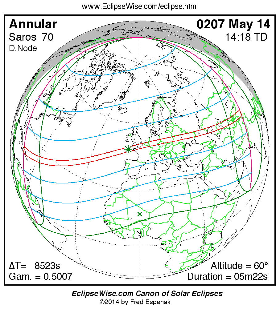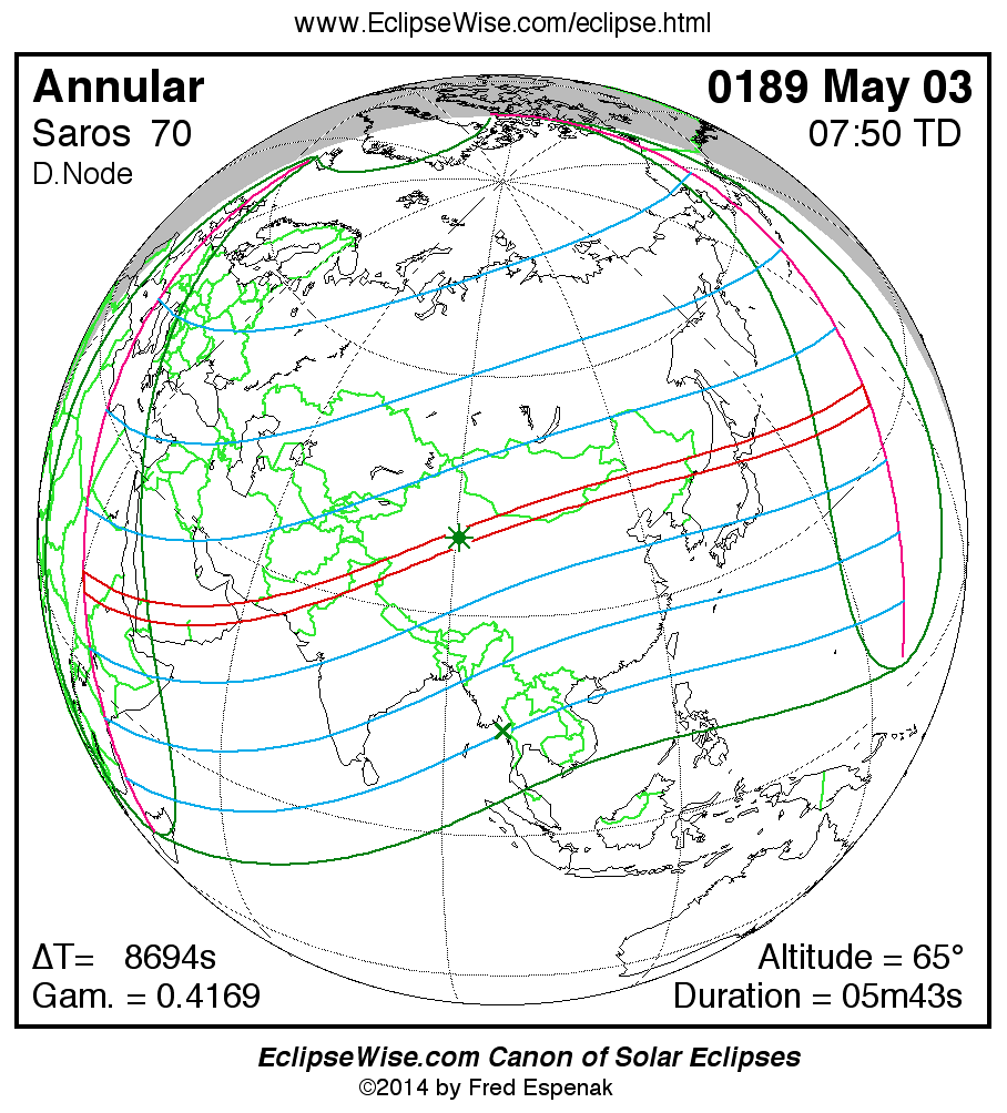 For more information on this series see Statistics for Solar Eclipses of Saros 70 .