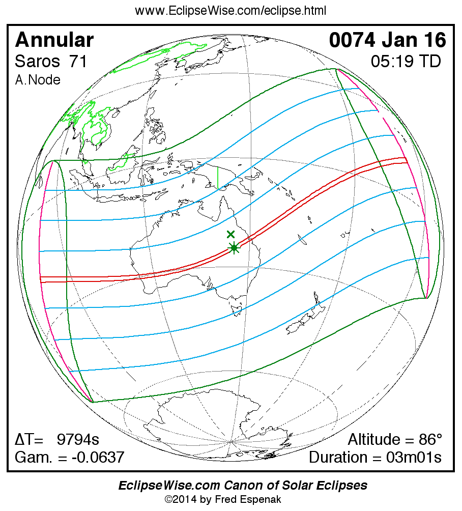 For more information on this series see Statistics for Solar Eclipses of Saros 71 .