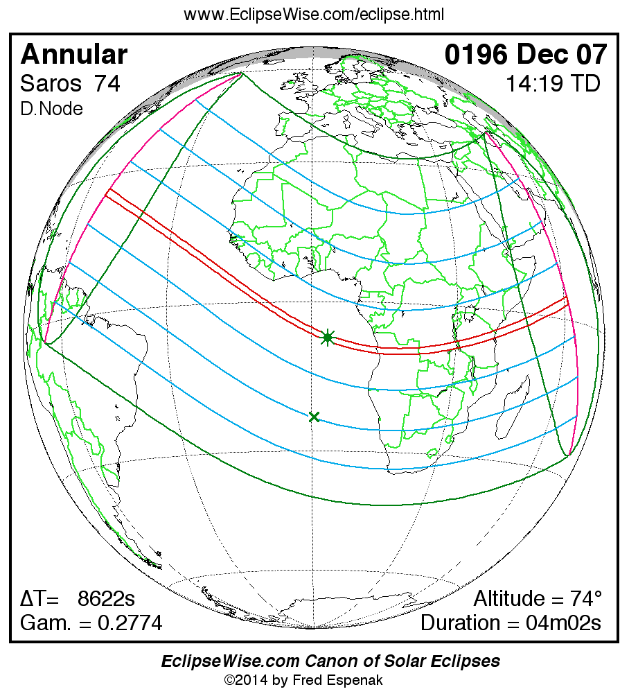 For more information on this series see Statistics for Solar Eclipses of Saros 74 .