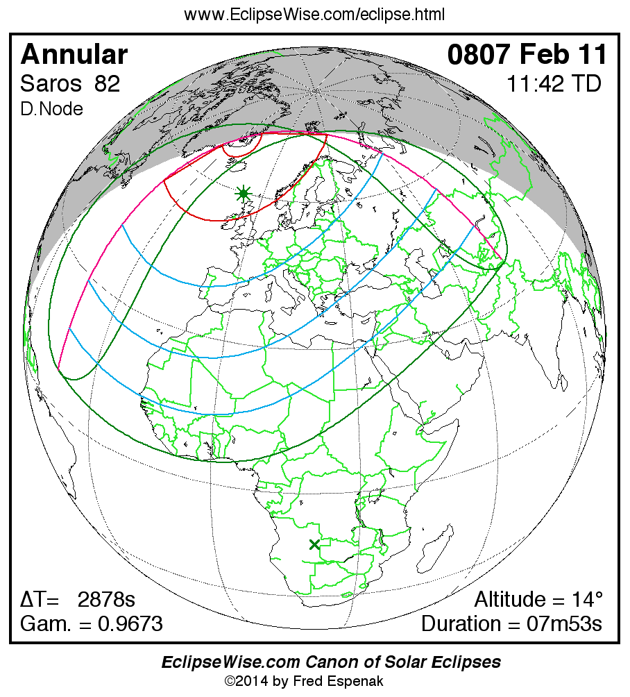 - Click on any global map to go directly to the EclipseWise Prime Page for more information, tables, diagrams and maps. Key to Solar Eclipse Maps explains the features in these maps.
