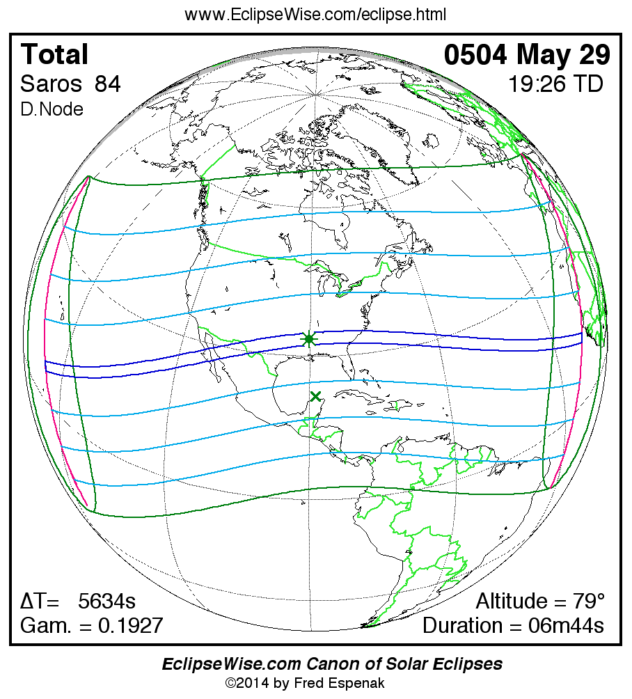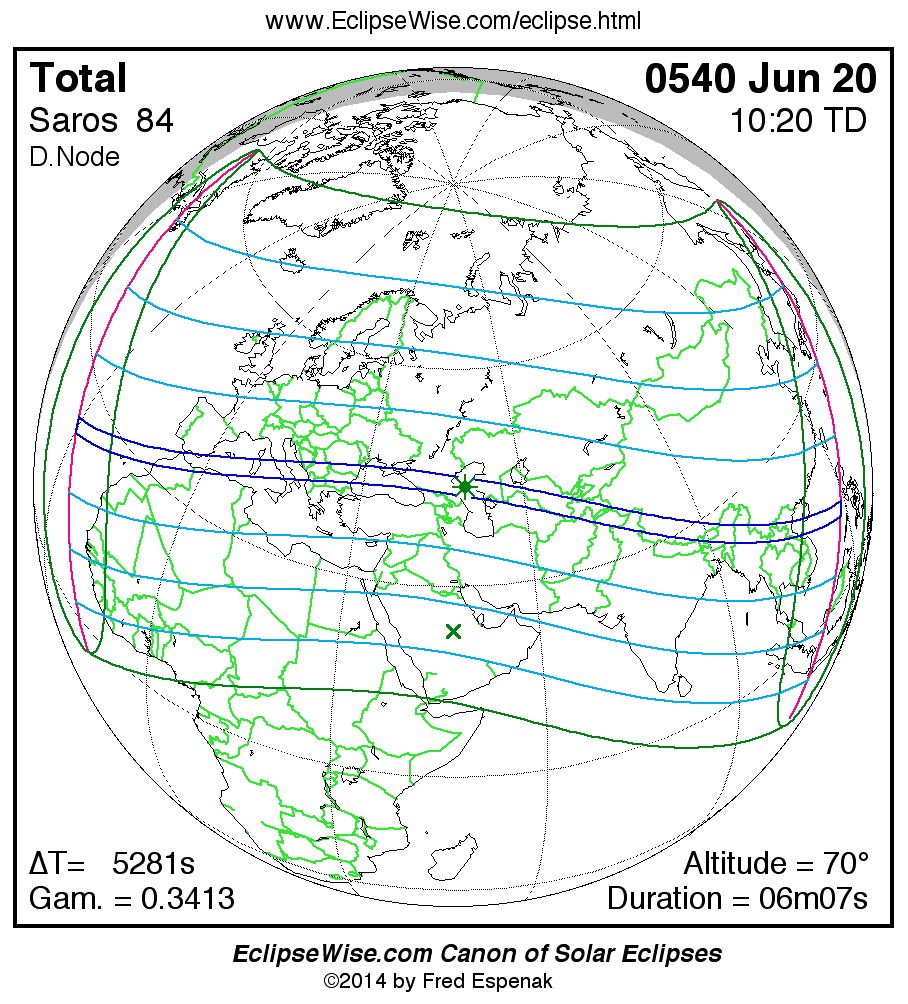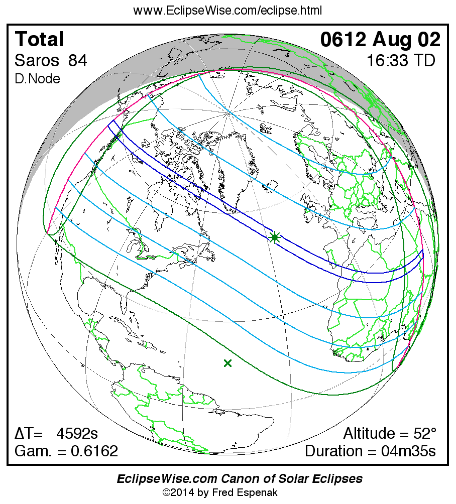 - Click on any global map to go directly to the EclipseWise Prime Page for more information, tables, diagrams and maps. Key to Solar Eclipse Maps explains the features in these maps.