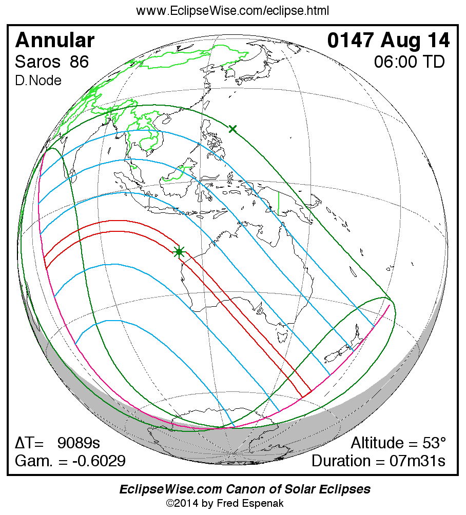 For more information on this series see Statistics for Solar Eclipses of Saros 86 .