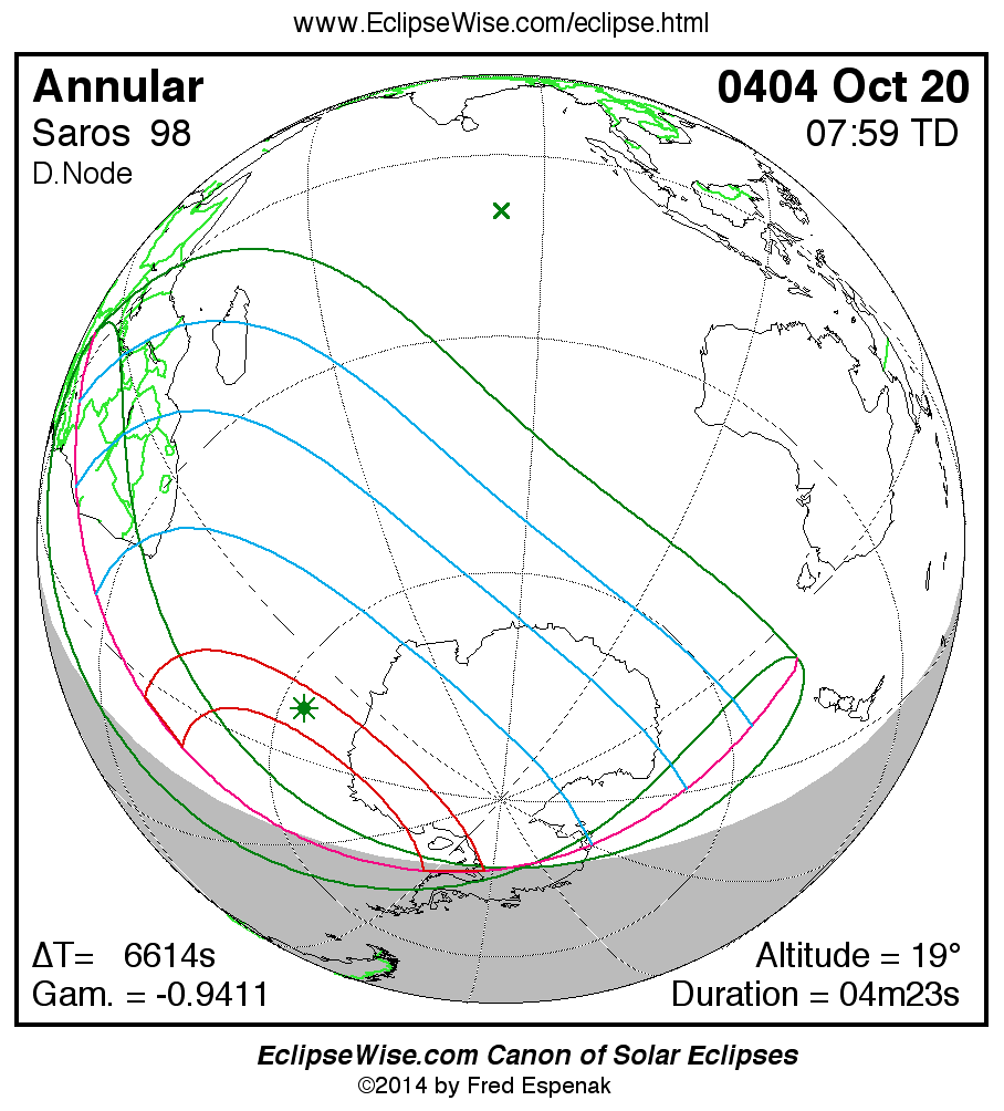 - Click on any global map to go directly to the EclipseWise Prime Page for more information, tables, diagrams and maps. Key to Solar Eclipse Maps explains the features in these maps.