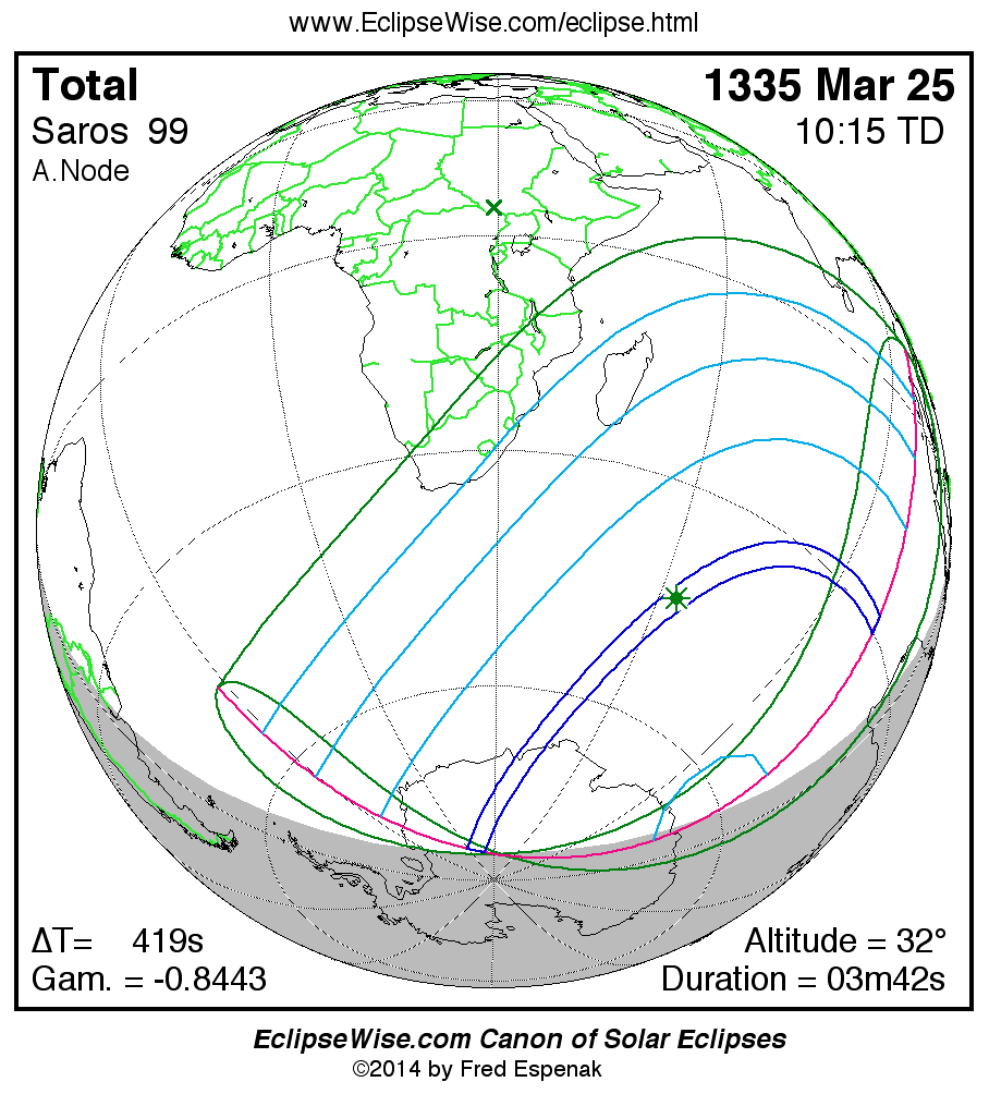 For more information on this series see Statistics for Solar Eclipses of Saros 99 .