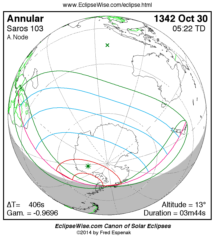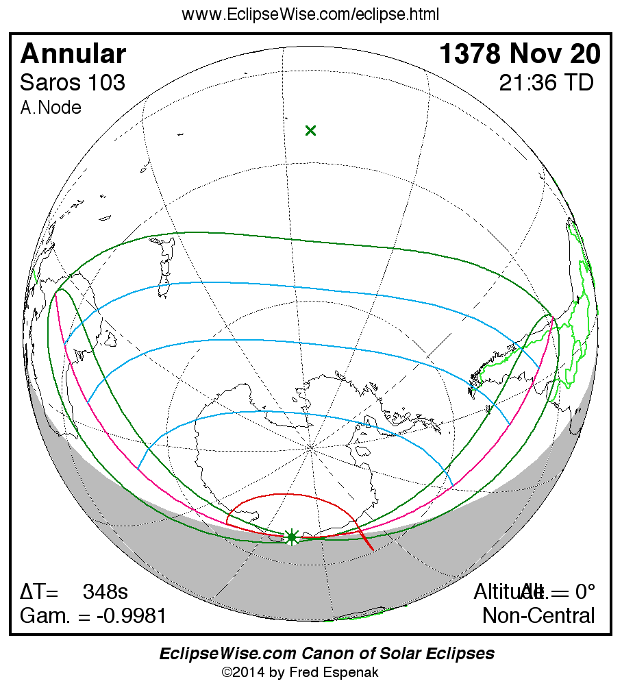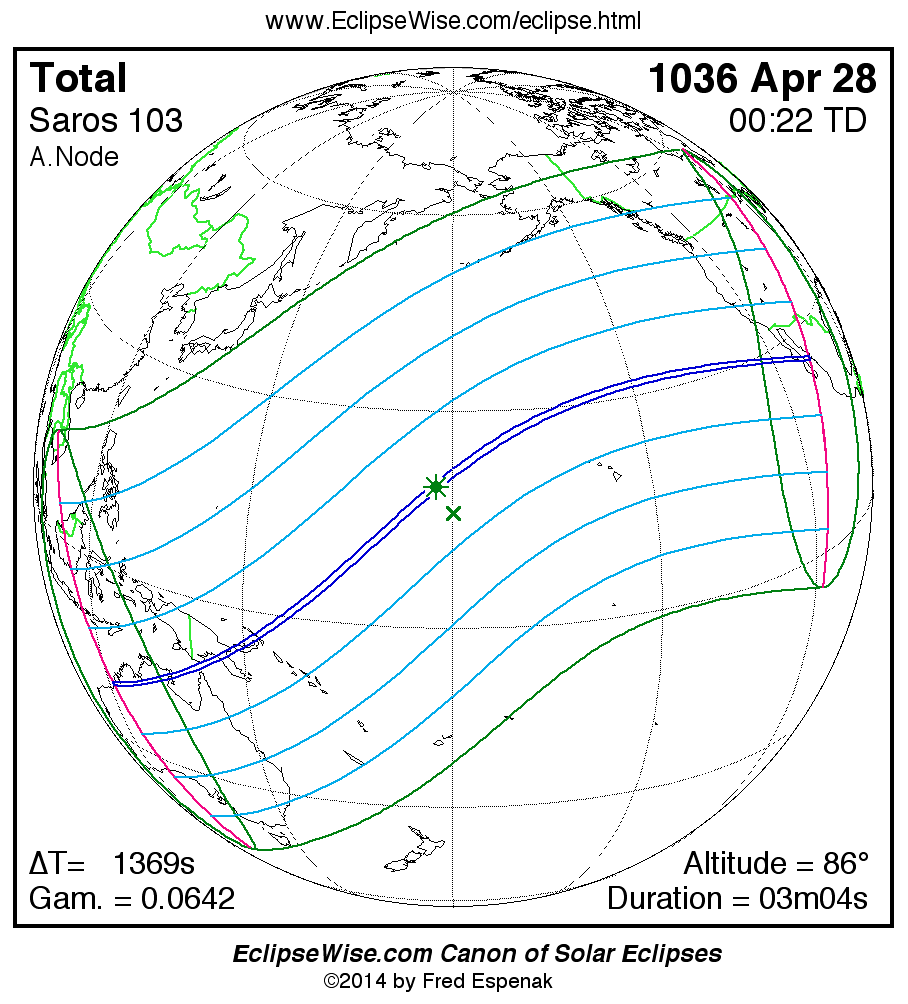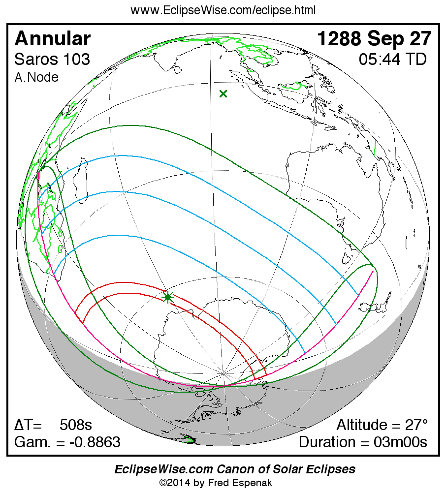 For more information on this series see Statistics for Solar Eclipses of Saros 103 .