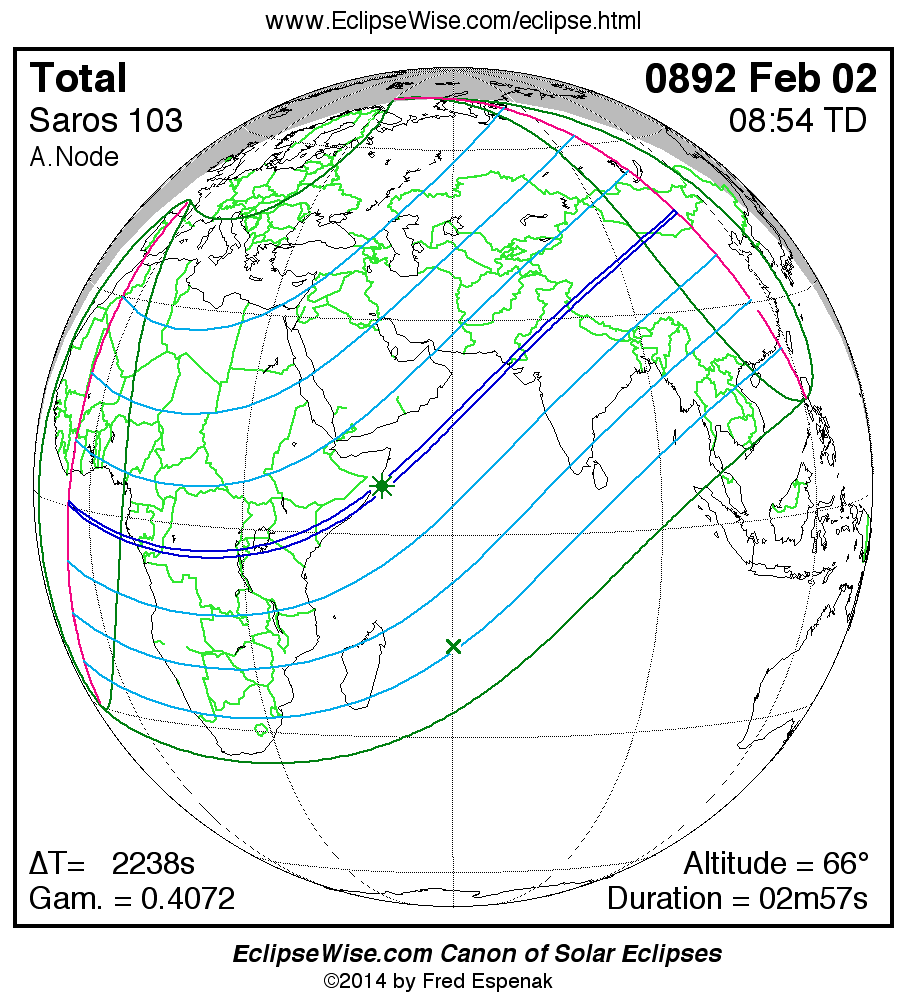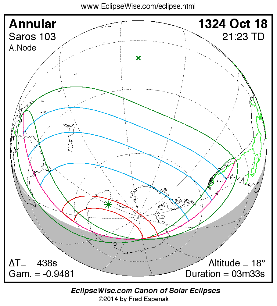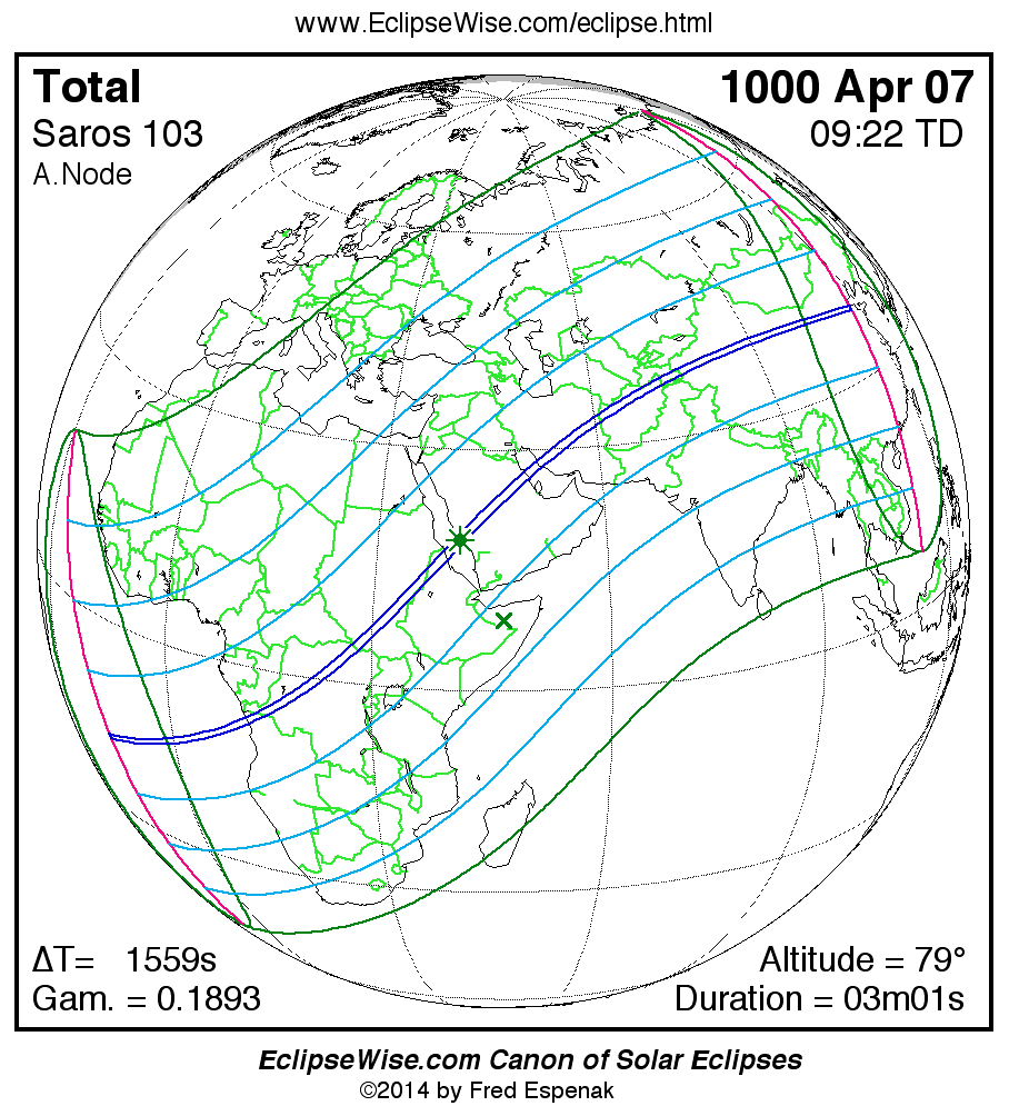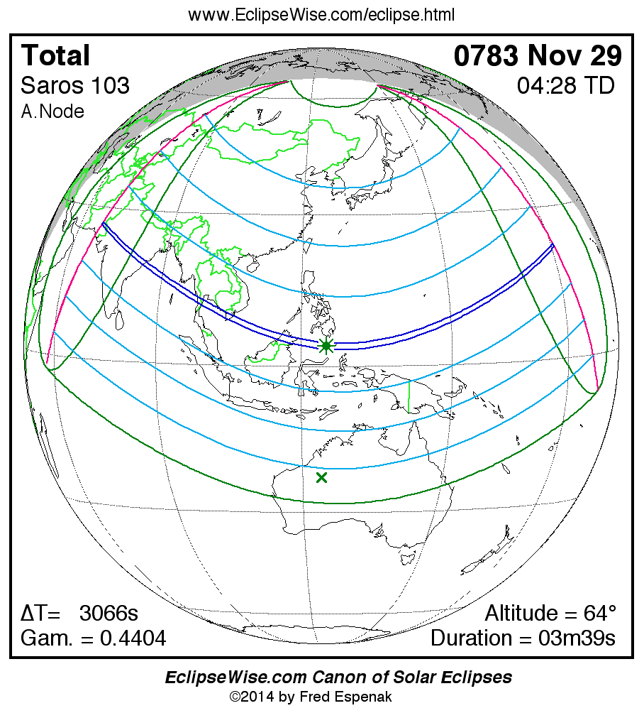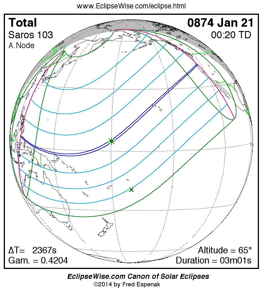 For more information on this series see Statistics for Solar Eclipses of Saros 103 .