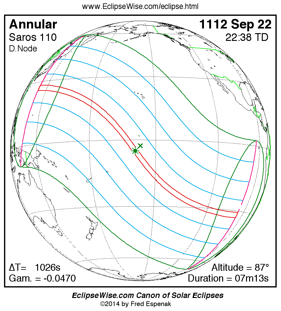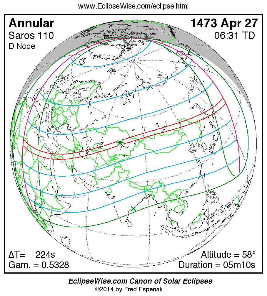 For more information on this series see Statistics for Solar Eclipses of Saros 110 .
